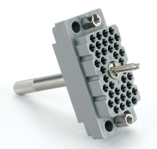 Screws are supplied with each cover for fixing it to the connector. 20, 38 and 56 way cable connectors have knurled locking screw. 90 and 120 way have a large locking knob – spare knobs and hex screws are available.