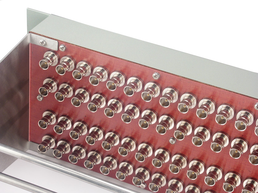 Two, three and four-row MUSA panels, offering a 75ohm coaxial patching solution for unbalanced AES audio. Available with 20, 24 or 26 connectors per row in 1U panels and 20 or 24 connectors per row in 2U and 3U panels. Rear connection is via 75ohm BNC sockets.
