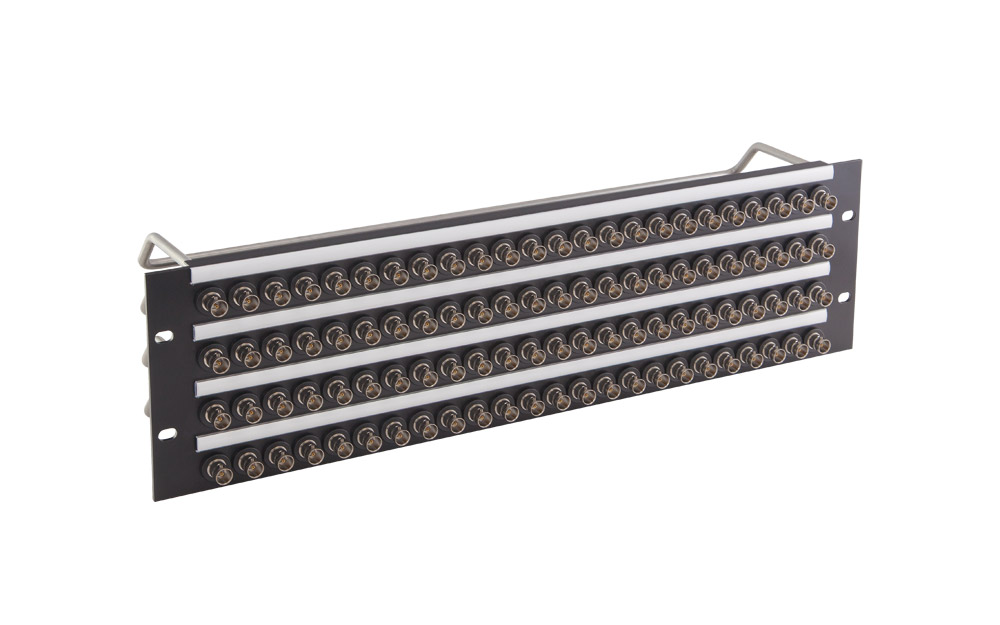 With one, two, three or four rows of connectors in 1U, 2U or 3U panels, each row with 12, 16, 20 or 24 connectors, depending on model, these 'Ultra High Definition' BNC termination panels are intended for 12G 4K ultra high definition (2160P60), 3G and 1.5G high definition, standard definition and analogue video applications. The performance exceeds the requirements of SMPTE ST 2082-1 making them suitable for composite and component video, 270 Mb/s SDI, uncompressed 1080i or 1080p HD-SDI video and 4K UHD (2160P60) video up to 12GHz.