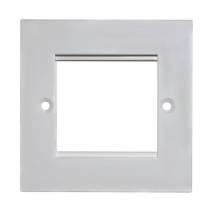 Connector modules are 50mm x 25mm. Blank modules are 50mm x 25mm or 50mm x 12.5mm, the latter enabling a single module to be located centrally in a faceplate. Faceplates are available in 1-gang and 2-gang sizes, with 50mm x 50mm and 50mm x 100mm apertures respectively. They have lightly radiused square corners, are available in both flat and bevelled profiles, and are supplied complete with mounting screws. All components in the series are white.