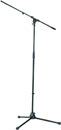 Low-priced, all-metal. Zinc, die-cast base with long folding legs. Single piece 805mm boom. Swivel joint with large wing nut. Height range: 900-1600mm. Weight: 2.45kg. Black finish.