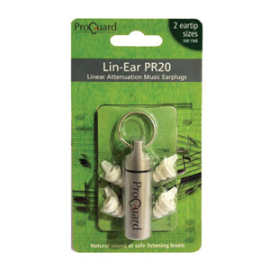 The ProGuard Lin-Ear PR20 Music earplugs have a re-useable, 19dB, linear attenuation filter that is CE approved to EN352-2:2002. The filter fits neatly into soft, flexible, silicon eartips (two sizes are available, standard and small) that provide comfort and durability even after long periods of use. Fitting deep into the ear canal, the earplug is discreet and has no protrusion, allowing the user to wear headphones or other types of headwear if required.