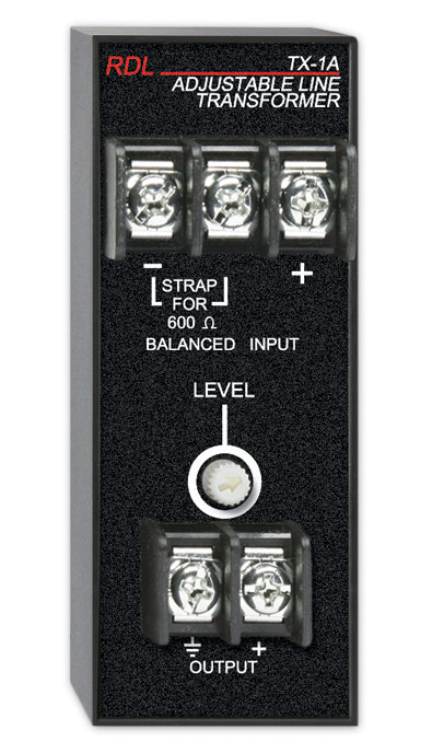 RDL TX-1A AUDIO TRANSFORMER Balanced to unbalanced, adjustable level, screw terminal I/O