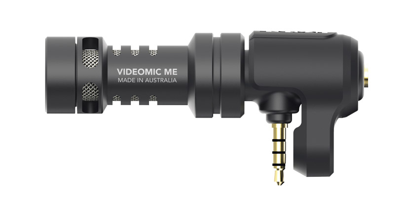 Rode VideoMic ME cardioid condenser microphone connects directly to the 3.5mm TRRS jack socket of a smartphone or device. Depending on the app used, a 3.5mm jack socket located on rear of the VideoMic ME allows ‘play-through’ monitoring via earphones.