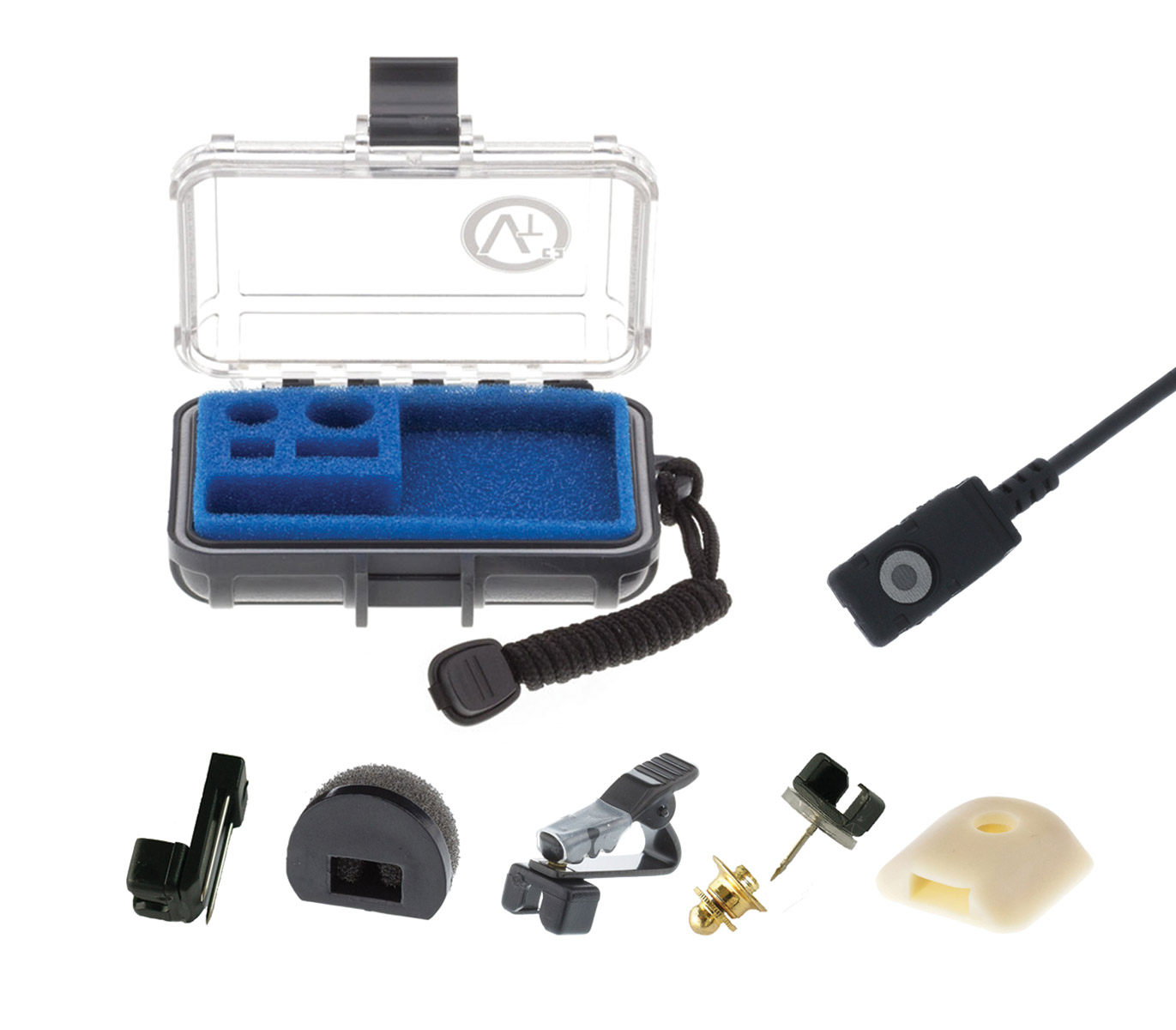 Included accessories: It is supplied either in the waterproof VTO case with crocodile style clip, professional windscreen, clothing pin mount, rubber body mount and tie-tack clip, or without case and accessories. Optional accessories: Cage clip, miniature magnetic clip, magnetic hang clip, dual crocodile style clip, leather body mount.
