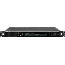 This has a half rack-width enclosure. The interactive menu system allows the setting of RF group, channel, frequency, RF power, stereo/mono/point-to-point (to a UHF-R receiver, which requires pilot tone) transmission, +4dBu/-10dBV input level. Utility settings include: Name of transmission (uploaded to body pack with Sync), display format and contrast, four control locking options. Sent to body pack with Sync: Body pack lock, volume limiter, stereo/mono, mixed mode/stereo mode, high frequency boost.