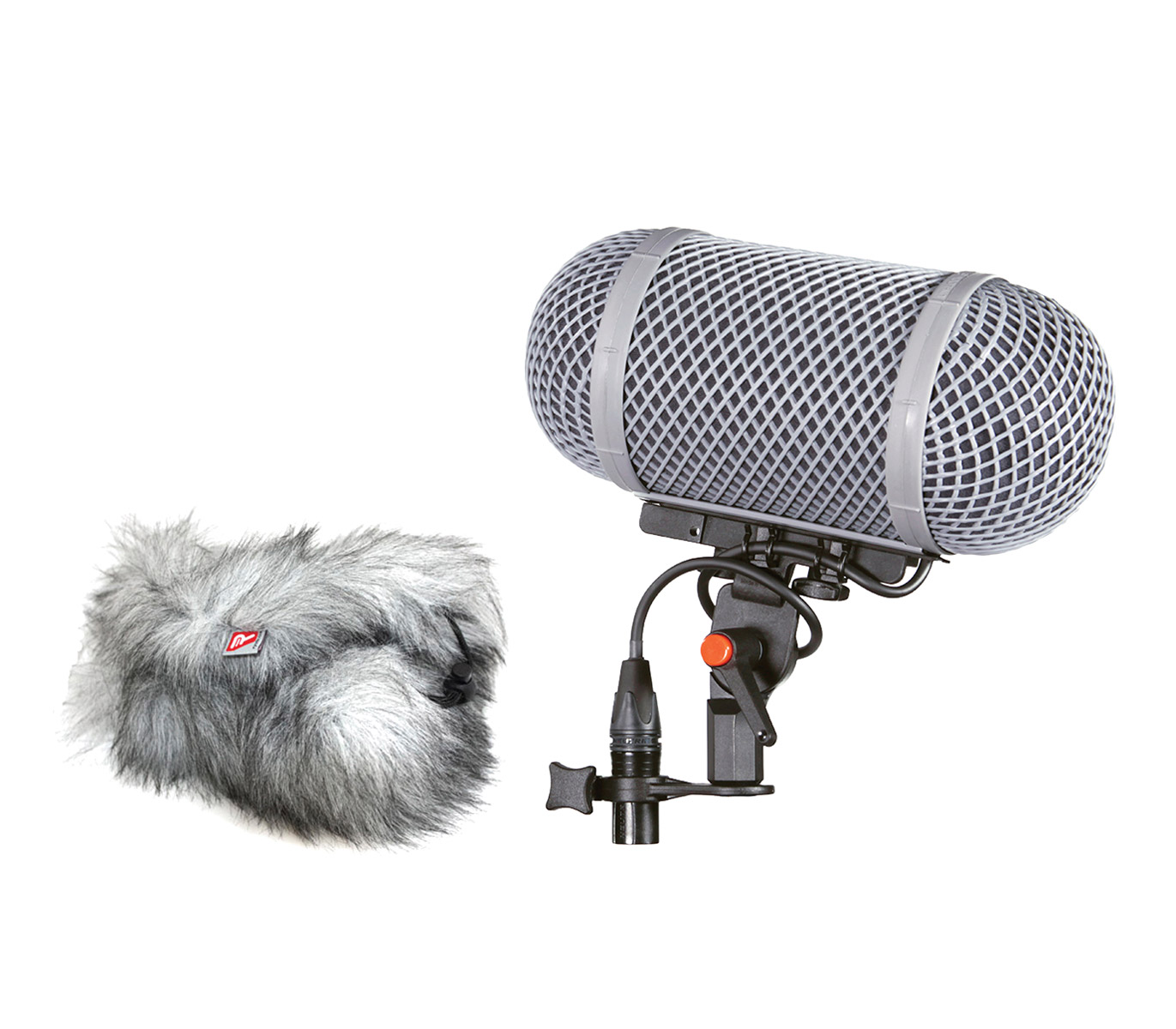 The microphone is carried in the patented Rycote soft suspension 'lyres', seen before on some of Rycote's later designs, to isolate it from vibration passed from the pole, stand or handle to which it is attached. The suspension is supplied with a short, ultra-soft microphone cable, to avoid these vibrations by-passing the lyres, ready-fitted to the angled XLR-holder below the suspension.