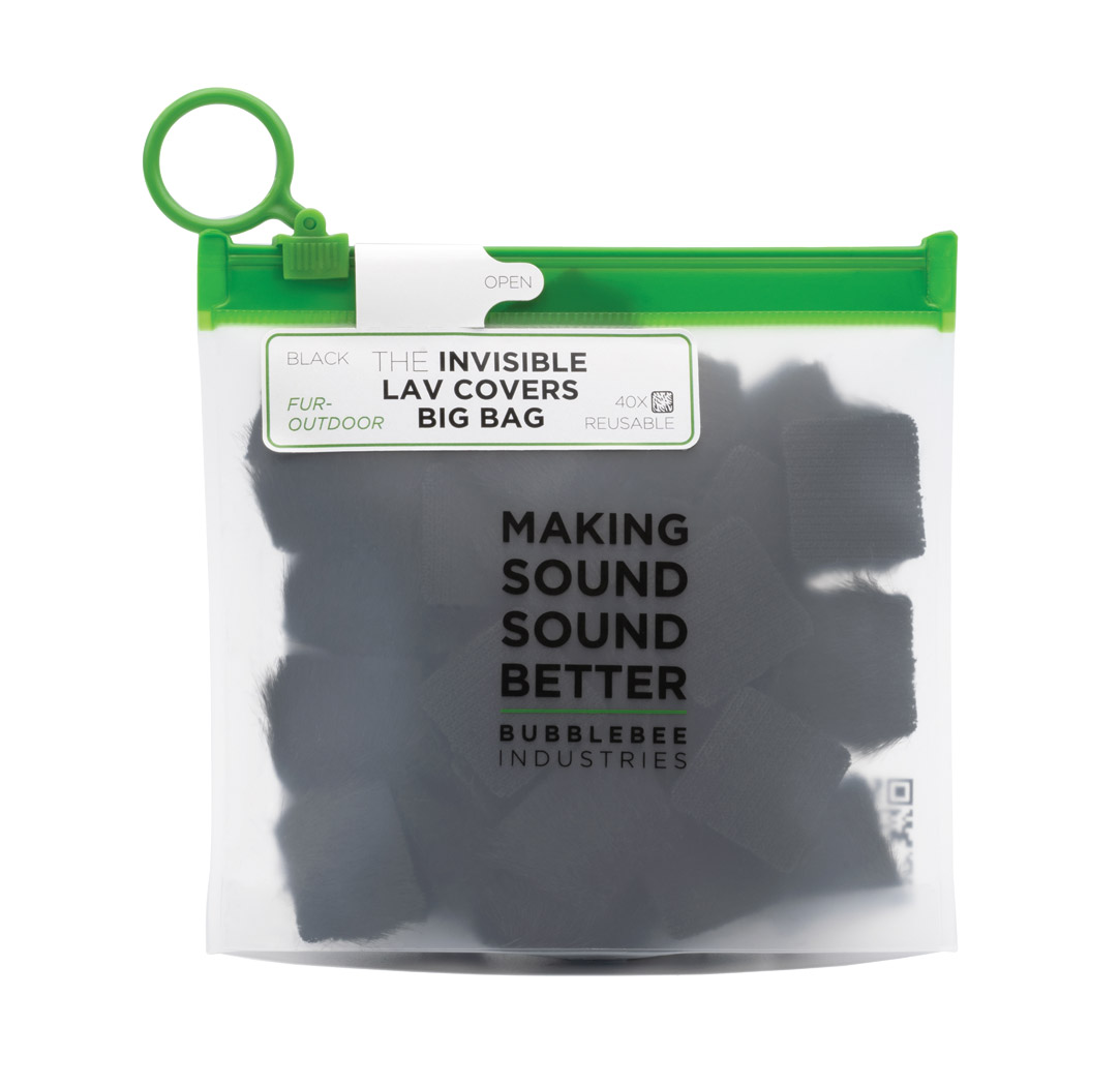 Bubblebee have designed this kit for those engineers who are looking for a variety of options without knowing which is best for their needs. The kit includes 3x Invisible Lav Covers Fur Outdoor (1x black, 1x white, 1x beige), 3x Invisible Lav Covers Original (1x black, 1x white, 1x beige), 9x Invisible Lav Covers Moleskin (3x black, 3x white, 3x beige), 15x Invisible Lav Tape, 5x Invisible Skin Tape, and 1x Accessory Case.