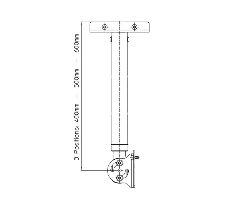 A long, length adjustable ceiling mount for Genelec 8000 series loudspeakers. 8000-454 T-adapter plate is also required when mounting 8320 or 8330 loudspeaker. The mount is manufactured from 50mm tubing that allows cable through, and is adjustable in length in six preset positions - 700mm, 800mm, 900mm, 1000mm, 1100mm, and 1200mm. The bracket that fixes to the loudspeaker enables the user to tilt through 90-degrees. Available in black or white finish. Weight: 5.3kg