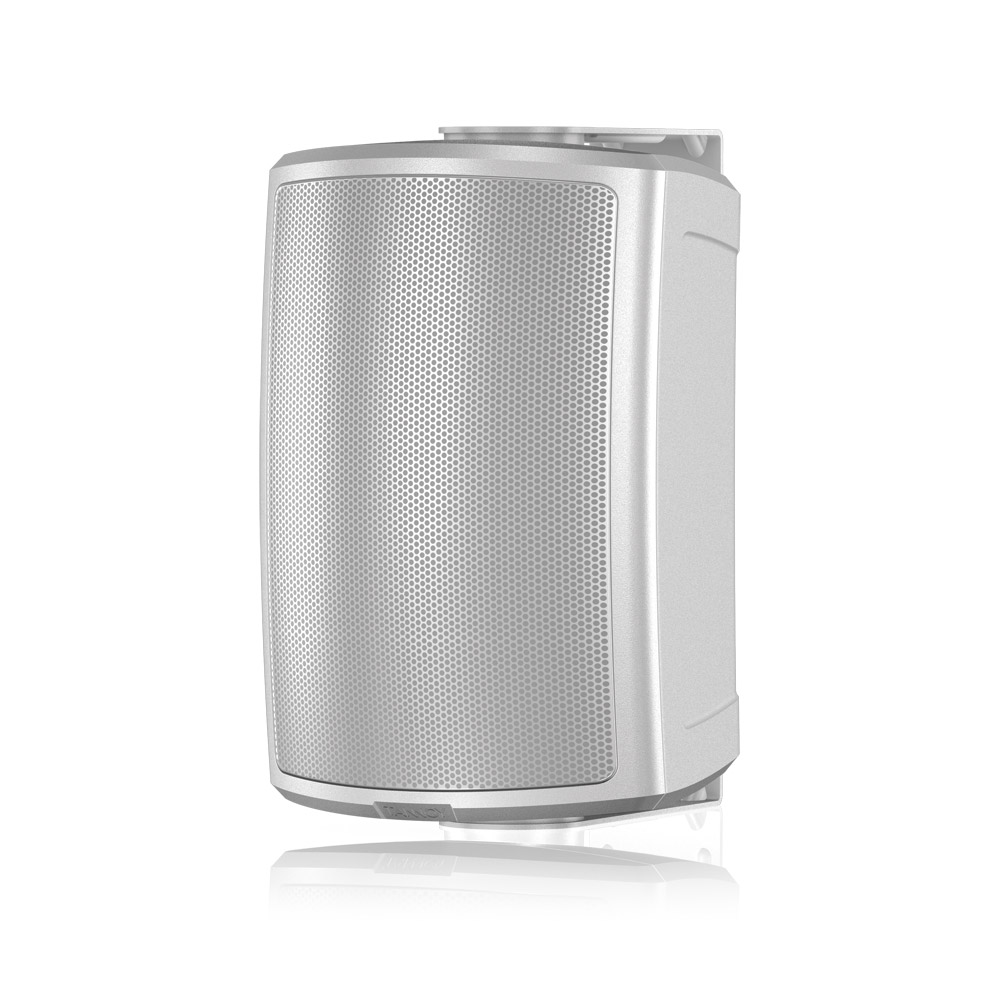 Available in black or white this IP65 rated, water-resistant, 60 watt loudspeaker houses a five-inch, dual concentric, driver to convey frequencies of 90Hz to 30kHz (-3dB). The driver has a 35mm voice coil for the low frequencies and a 20mm PEI dome for the high frequencies. The AMS 5DC has a conical dispersion of nominally 90 degrees and a sensitivity of 87dB (1W at 1m) and a peak output of 111dB SPL. Transformer taps of 3.75/7.5/15/30W at 70V and 7.5/15/30W at 100V can be accessed using a rotary dial on the rear panel of the cabinet, whilst a low impedance setting of 16 ohms can also be accessed. Tannoy recommend using an amplifier rated at 120W at 16 ohms when using the AMS 5DC in low impedance mode. A weatherproof cover with cable gland protects both the Phoenix style connectors and the transformer tap.