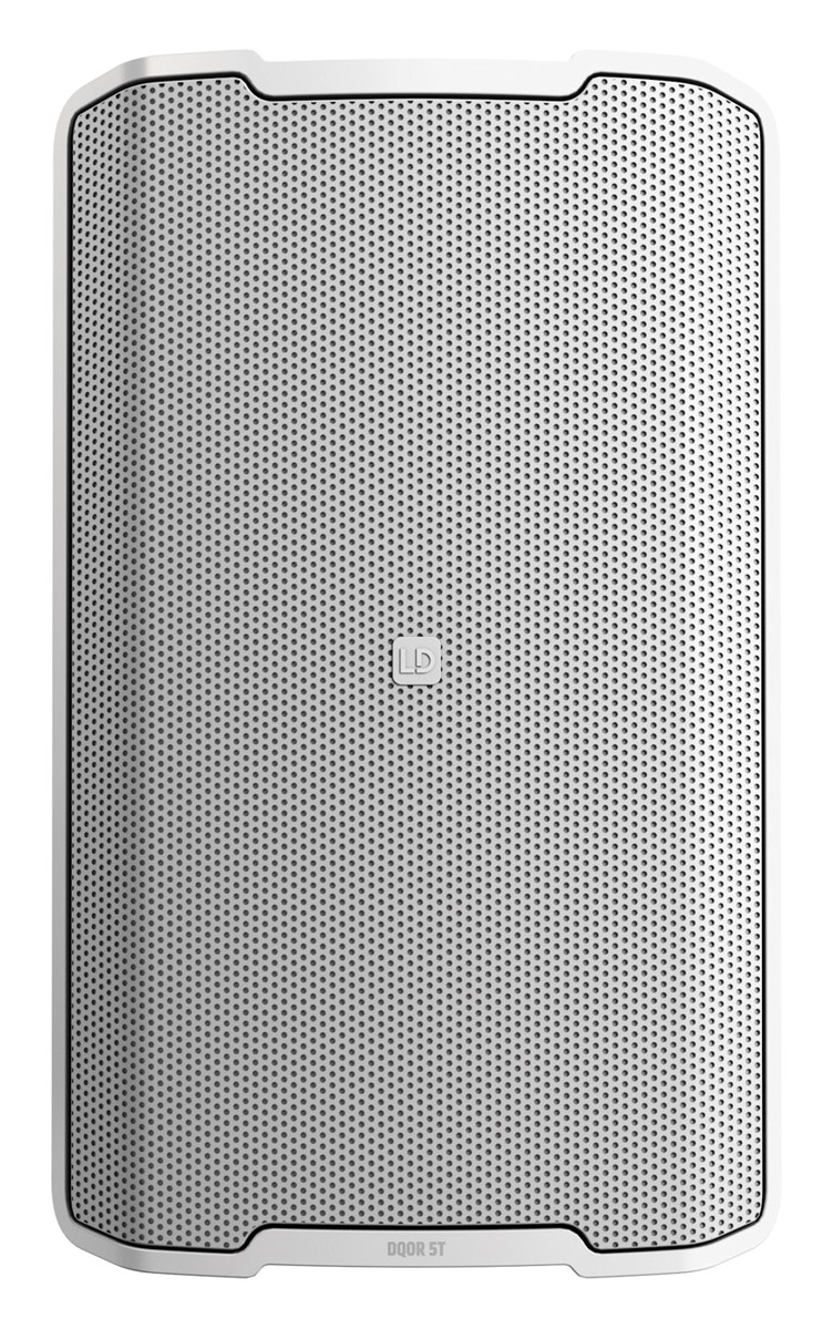 Available in black or white and supplied as a pair, DQOR 5 is a passive loudspeaker for indoor or outdoor use. The 2-way speaker has an IP55 rating and features a 'corrosion-resistant' aluminium grille, 5-inch weather treated paper cone woofer, and 1-inch neodymium high frequency driver. A frequency response of 74Hz to 20kHz and SPLs of 84dB at 1W/1m and 105dB maximum are complimented by a dispersion of 120 x 80 degrees (H x V) at -6dB. RMS output is 70W and peak power is 140W. The included surface mount bracket allows positioning of up to 27 degrees tilt and 45 degrees horizontal swivel. Connection is via 4-pole terminal block housed within the surface mount bracket, which also acts as signal inlet.