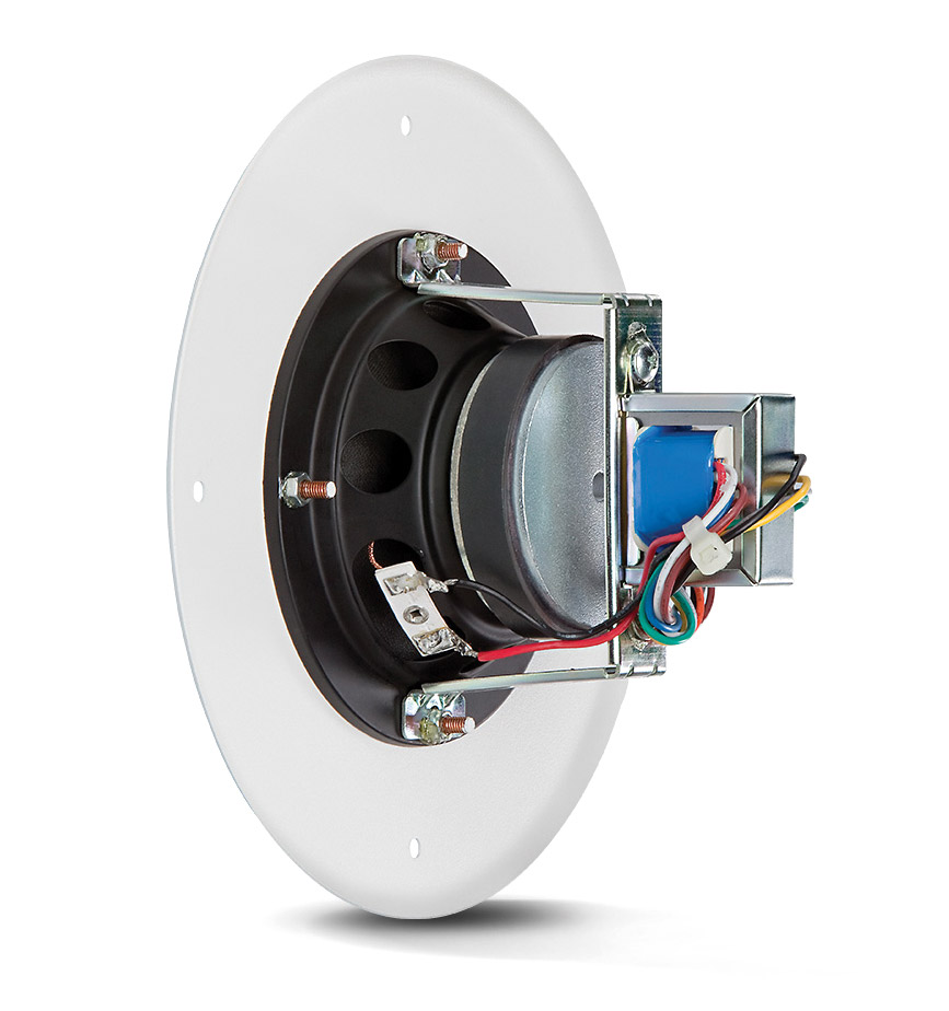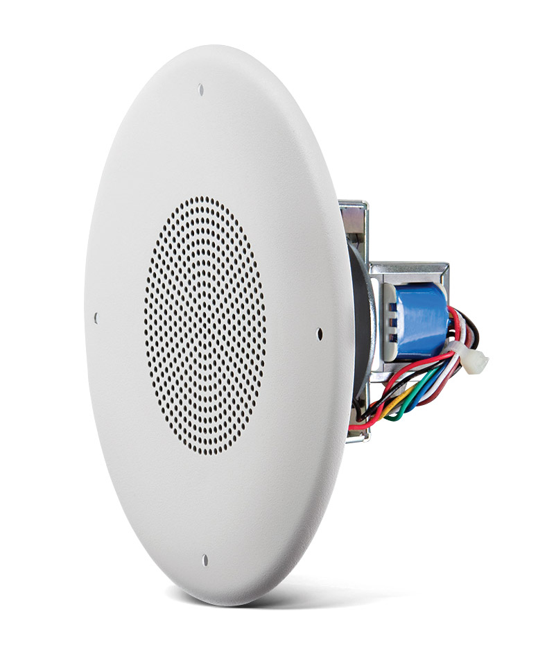 The speakers are able to operate on 100V, 70V, or 25V systems, and are available in white only.