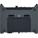 The top of the F2 has a USB-C connector for transferring files or adjusting settings using the F2 Editor software. This USB-C connection can also be used with the optional AD-17 power adapter. To the right of the USB-C connection is a 3.5mm stereo jack connection for connecting headphones, and a second 3.5mm locking jack connector for use with the included lavalier microphone or other compatible input source. The rear panel of the field recorder features a belt clip, along with media card slot with cover.