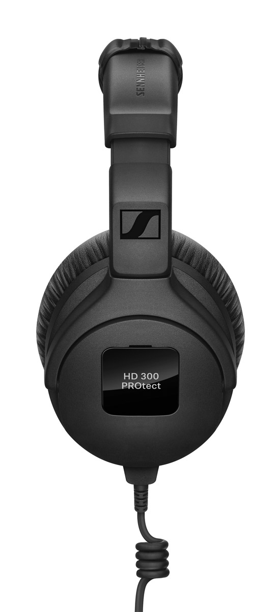 These headphones have the same audio properties and physical design of HD 300 PRO, however Sennheiser have added switchable ActiveGard limiting protection at 110dB SPL. An on/off switch located beneath a side panel on the cable-entry side earphone. Weight: 297g, without cable.