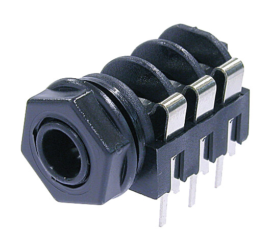 These solder connection and horizontal PCB mounting panel mount 6.35mm jacks offer a wide variety of combinations of contacts and mounting options. They are available in mono and stereo versions with switching and non-switching contacts, and three nose types - fully threaded, half threaded and chrome ferrule.