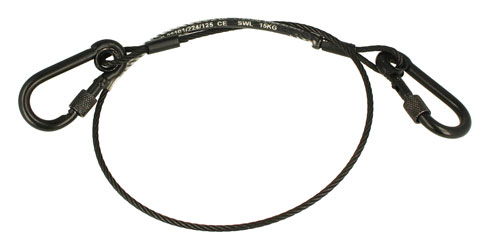 Manufactured from flexible galvanised wire rope, these Doughty safety bonds are available in differing lengths, safety weight load capacities, cable diameter, and end type. These safety bonds could also be used for retaining accessories such as small loudspeakers, gel-frames and barn-doors, where the weight of the accessory is minute compared to the SWL of the bond.