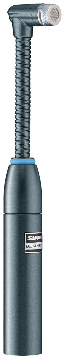 Shure Beta 98AD/C is a cardioid condenser instrument microphone with 'smooth high-end response'. The frequency response has been tailored to suit drums and percussive instrumentation, and is particularly useful for instruments with high sound pressure levels such as snare or tom drums.