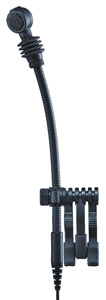 This space-saving microphone is good for low visibility, close-microphone techniques. With low sensitivity to impact and handling-noise, it has 'very high sound pressure handling capability', is 'easy to position due to compact design' and has an integral stand mounting adapter. It is supplied complete with drum clip, but no separate stand adapter.