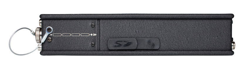 The rear of the unit can dock up to two L-mount batteries, which can be charged in situ when using and external DC power source to power the 833. The top panel of the 833 has a hidden expansion port connector for use with the optional XL-AES 8-channel AES3 input expander.