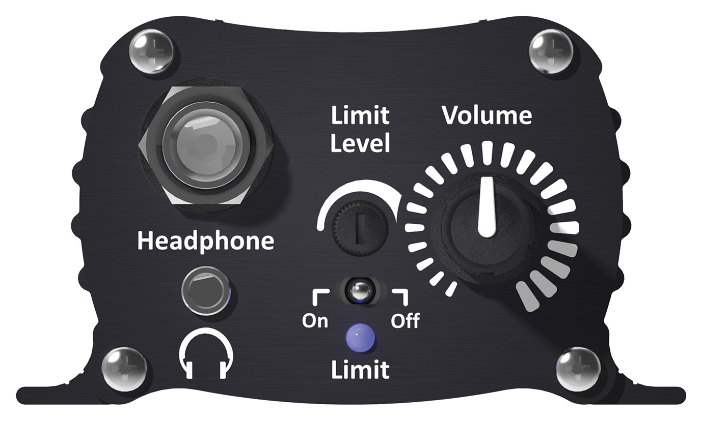 Dante input with 6.3/3.5mm jack headphone outputs and rotary volume control. |