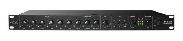 The Denon DN-312X has much of the same functionality as the DN-306X however it comes loaded with six balanced mic/line combination inputs and six mono (three stereo) line level inputs on RCA phono. Dedicated phantom power can be activated by switch for each individual mic channel and independent signal LEDs for on the front panel give the user indication of input signal.