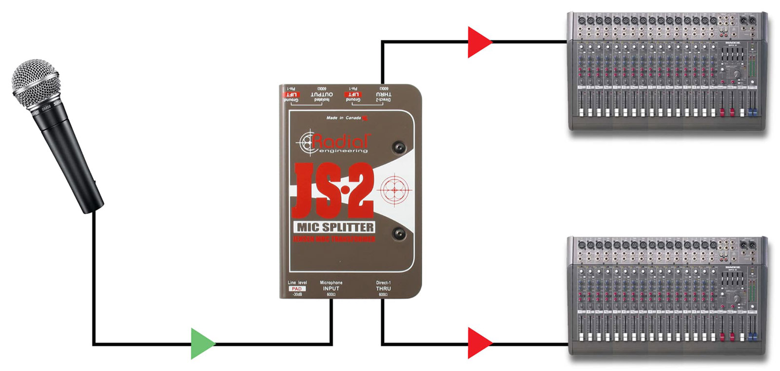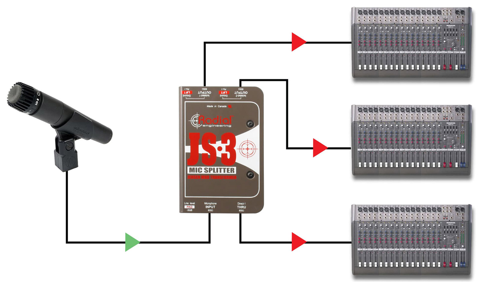 A range of microphone splitters from Radial Engineering, useful for employment in systems whereby a separate feed is required without colouration or changes in impedance.