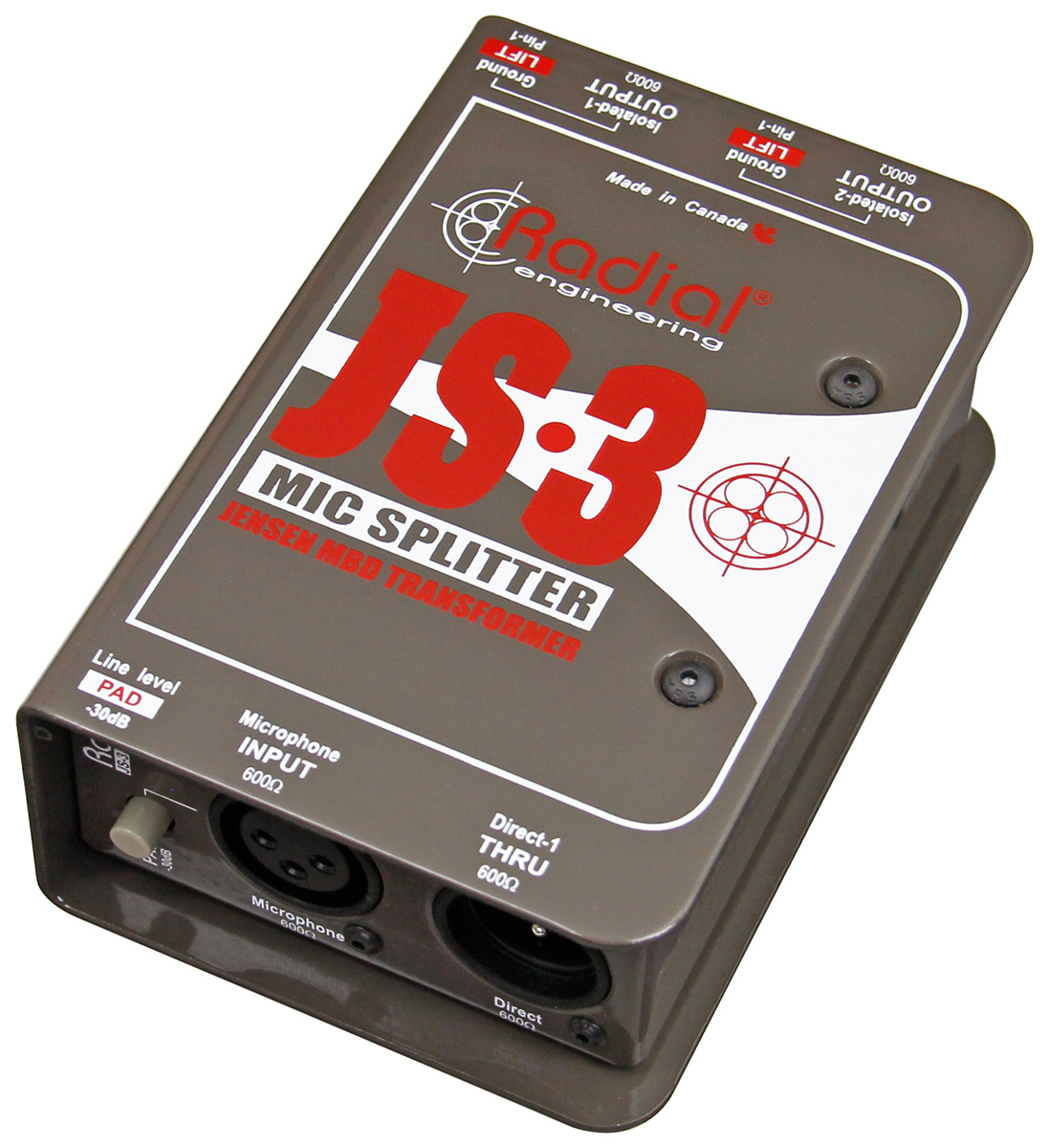JS3 is a high performance balanced mic-level splitter designed to send a signal to multiple destinations simultaneously, with two transformer-isolated outputs and one direct output.
