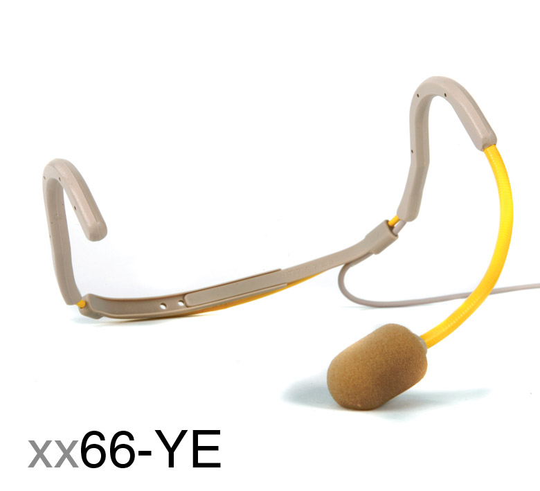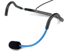This was designed as a rugged hands-free microphone for sports and aerobics; other applications include TV Journalism, transportation, warehousing and the restaurant industries. An adjustable headband, worn behind the head, secures the microphone on an adjustable 4mm gooseneck, which is sealed for protection against water, dust, and perspiration. The capsule has efficient noise cancellation to help prevent feedback and reject interference from background noise of crowds and vehicles. It is available with blue and yellow, as well as black, goosenecks.