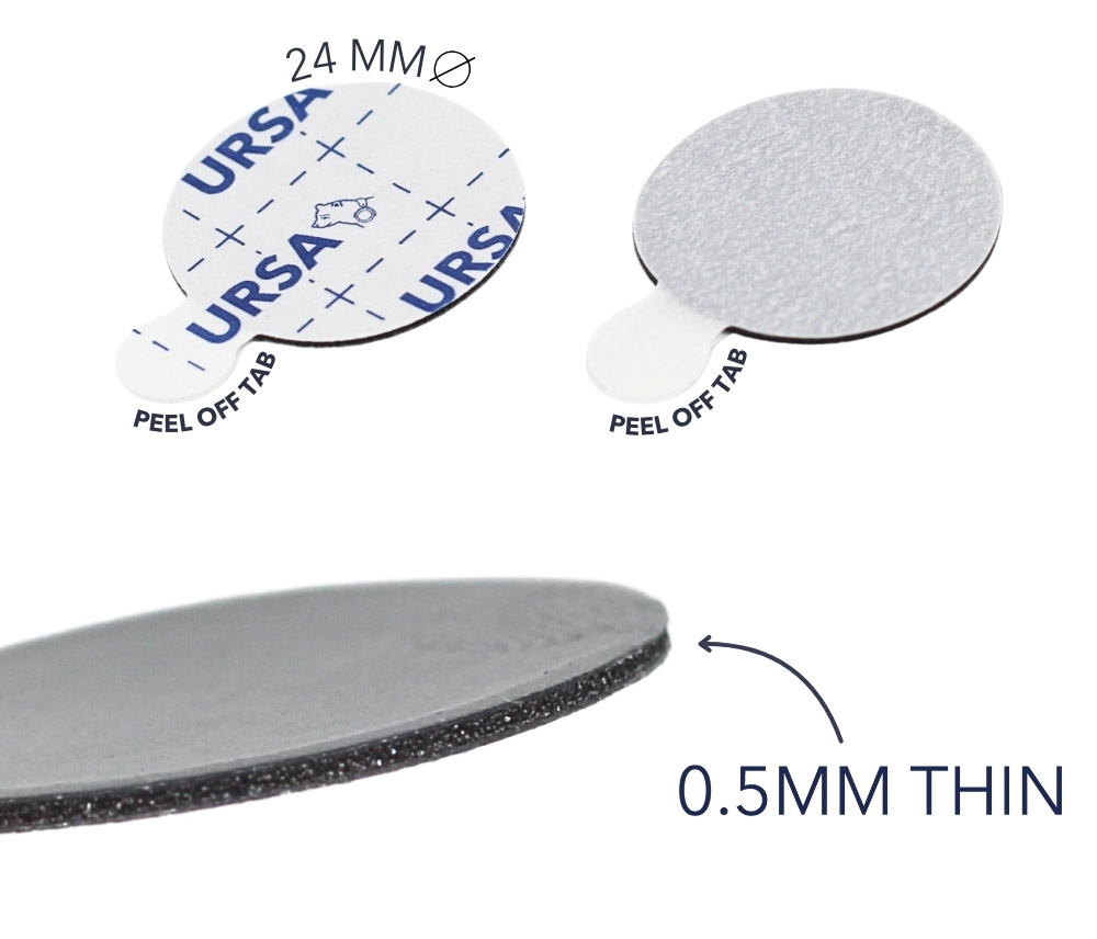 Very Stickies have been designed for extreme mounting requirement. Like Sticky Circles, these stickies have a pre-cut 24mm diameter and peel-off tabs. The adhesive mounts are normally used with the URSA WireRig due to their stability. URSA suggest Very Stickies are so strong they can damage delicate fabric and leave residue. They are also not rated as hypoallergenic.